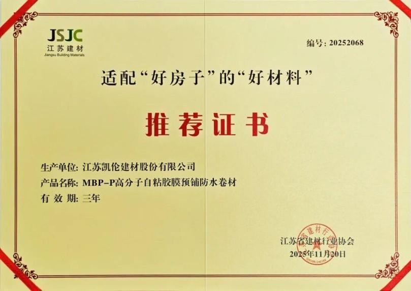 Vào ngày 20 tháng 11, sau khi được Hiệp hội Công nghiệp Vật liệu Xây dựng tỉnh Giang Tô xem xét nghiêm ngặt, màng chống thấm tự dính polymer MBP-P của Canlon đã được chọn vào danh sách đề xuất 'vật liệu tốt' phù hợp cho 'ngôi nhà tốt' nhờ hiệu suất sản phẩm tuyệt vời và chất lượng bảo vệ môi trường.