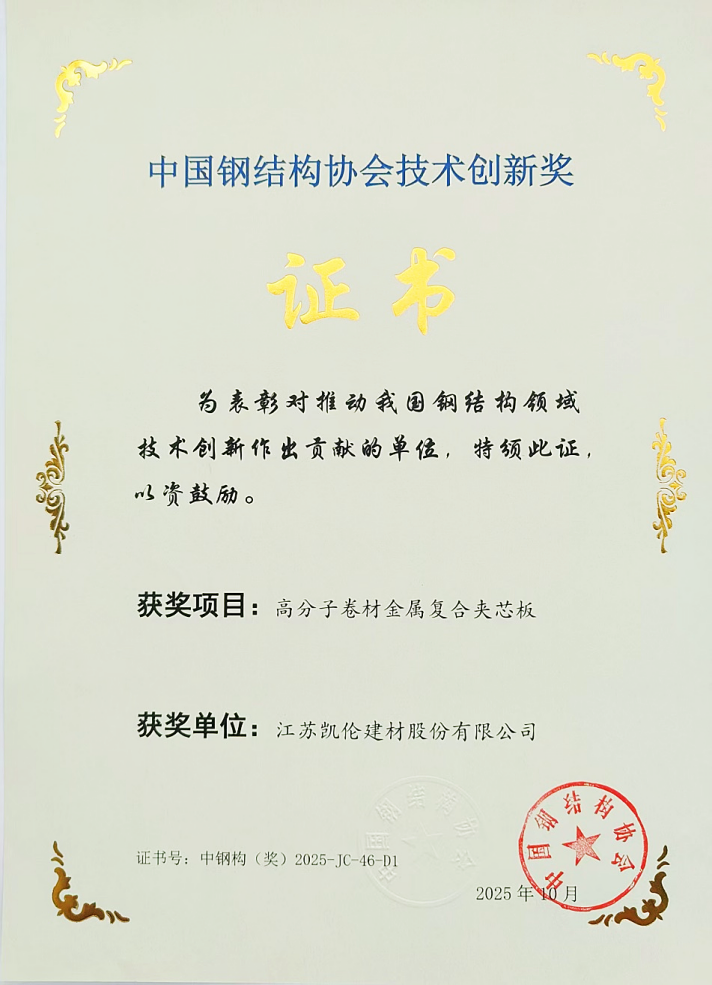 Vào ngày 13 tháng 10 năm 2025, 'Hội nghị đại diện thành viên lần thứ 9 của Hiệp hội kết cấu thép Trung Quốc và Hội nghị kết cấu thép Trung Quốc năm 2025' đã được khai mạc hoành tráng tại Nam Ninh, Quảng Tây. Dự án ' Bảng điều khiển bánh sandwich tổng hợp kim loại màng polymer' của Canlon đã giành được 'Giải thưởng Đổi mới Công nghệ' năm 2025 từ Hiệp hội Kết cấu Thép Trung Quốc vì sự đổi mới và tính thực tiễn dẫn đầu ngành.