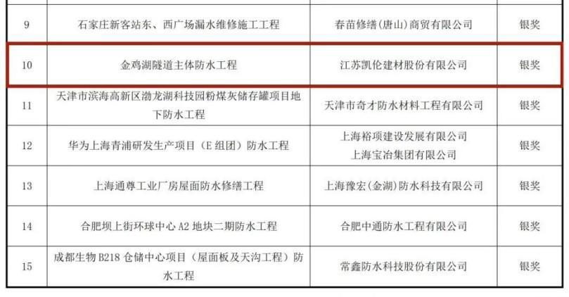 Trong số đó, Canlon đã giành được giải bạc về công nghệ kỹ thuật với dự án 'Dự án chống thấm chính đường hầm hồ Jinji' , một lần nữa thể hiện mạnh mẽ chất lượng tuyệt vời của hệ thống chống thấm tích hợp.