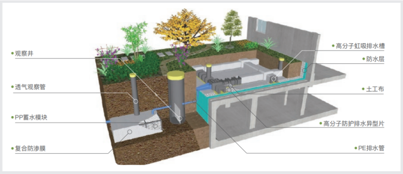 Ngoài ra, khu công nghiệp đã phát triển và đưa vào sử dụng Hệ thống thu gom nước thải Siphon trên mái nhà Canlon Planting Roof . Hệ thống này thu thập và tái chế nước bề mặt và nước thấm, đạt được khả năng chống thấm và thoát nước tích hợp đồng thời đáp ứng các yêu cầu quốc gia về bảo tồn nước trong các công trình xanh cũng như các yêu cầu về thấm, lưu giữ, lưu trữ, thanh lọc, sử dụng và thoát nước trong xây dựng thành phố bọt biển.